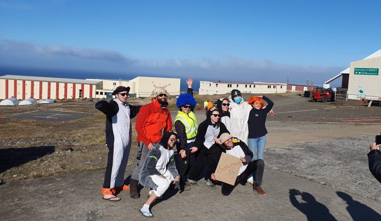 Soirée à la « vie comm » (vie commune), où un repas digne des grandes tables nous attend. Après le brief de Yann, chef de district (Discro), je prends la parole pour présente l’amicale et ses publications aux hivernants de CRO, et remettre en cadeau les tomes 1 et 2 de « mémoires à plusieurs voix », recueil de petites histoires et aventures vécues dans la grande histoire des TAAF. On est en train de préparer le tome 5 qui devrait être disponible pour les 50 ans de l’amicale l’année prochaine. La soirée joyeuse se prolonge pour certains tard dans la nuit.