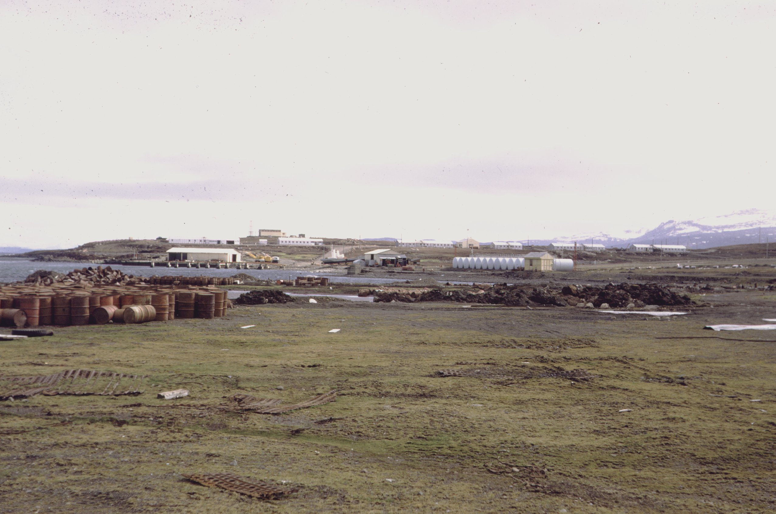 Mur pare-vent, pylône du G.R,I., forêt de mâts d'antennes radio, cuves de carburant (ça, c'est une bonne chose, quand je me rappelle le bazar que c'était pour débarquer et stocker les fûts ! ).