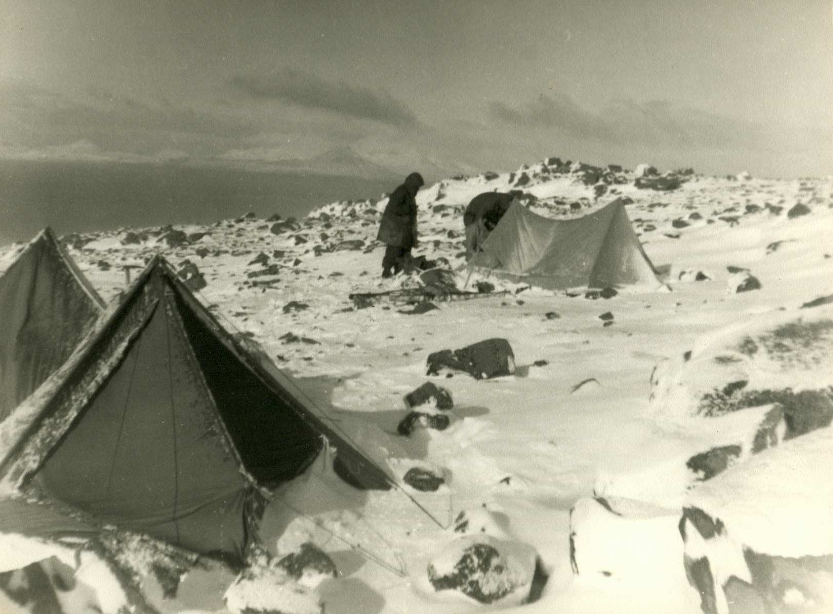 Séchage de la tente - J.Schmitt (Magnétisme), J.Nègre (Iono), G.Perraut (Ondes Longues) Photo Gérard Binot