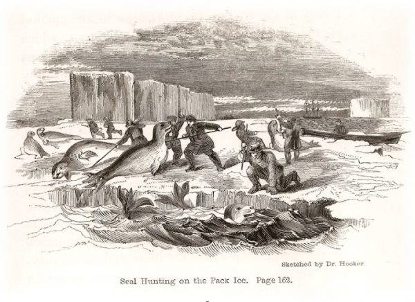 Ce furent tout d’abord les baleiniers qui hantèrent ces parages, à la recherche de ressources qui s’amenuisaient partout ailleurs. Rapidement, ils prirent pied sur presque toutes les îles périantarctiques pour y chasser les éléphants de mer et, surtout, les otaries en raison du plus grand bénéfice que l’on tirait de leur peau.
