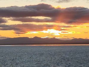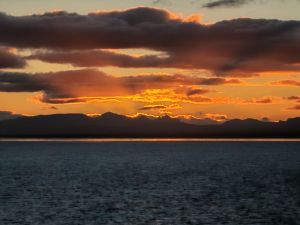 Je reste le dernier après le coucher de soleil et jusqu’à la nuit tombante sur le bastingage ; l’heure du second service m’incitera à rentrer à l’intérieur.
