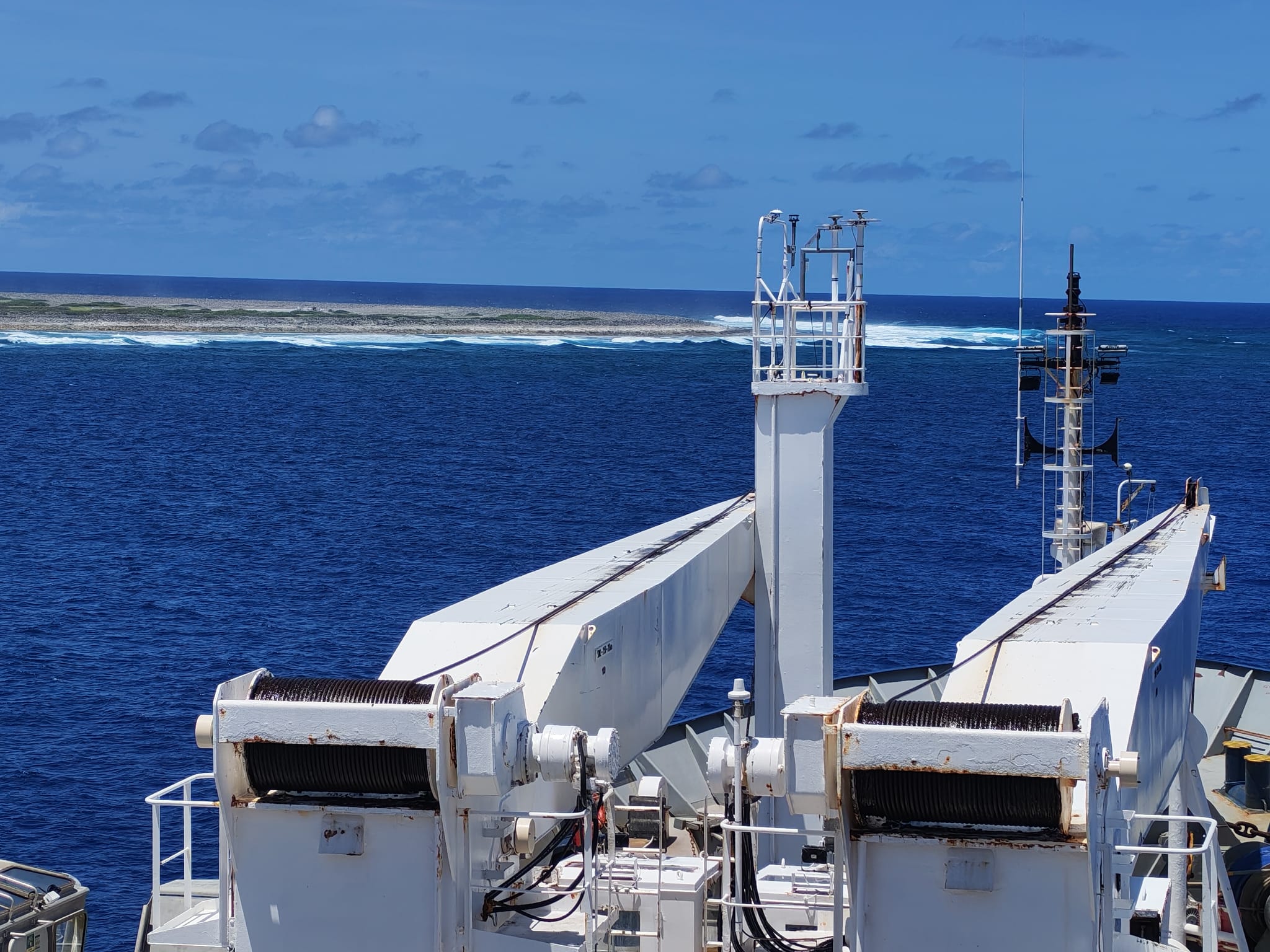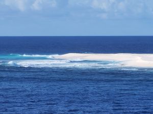 Vers la fin du déjeuner, on aperçoit par les hublots une plage de sables blancs, Tromelin !