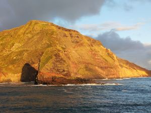Le navire stationne face au cratère de Saint Paul dès le lever du jour.
