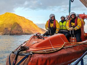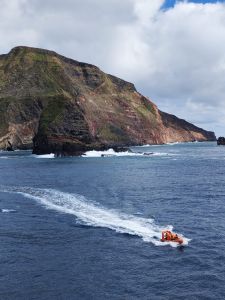 La météo est clémente et le « Workboat » du Marion est mis à contribution pour emmener les personnels sur site.