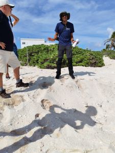 Je me retrouve dans un groupe animé par Jordan, en route pour la découverte de l’île dans un secteur autorisé. Avant le départ, Jordan présente l’histoire de l’île ainsi que les particularités écologiques du site.