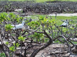 C’est le paradis des fous masqués et des fous à pieds rouges. Il y a aussi des sternes blanches (gygis) ainsi que le noddi brun.