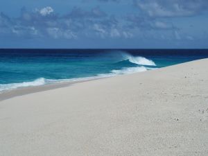 Le vent est chaud et la plage a un caractère désertique avec en sus du soleil, la réverbération du sable blanc ; chapeau obligatoire et moi qui boit peu, j’engloutis là beaucoup d’eau au point qu’il me faudra refaire le plein à la base…