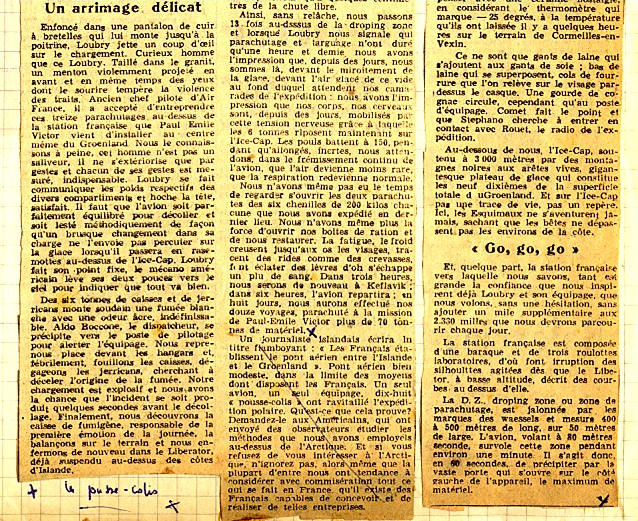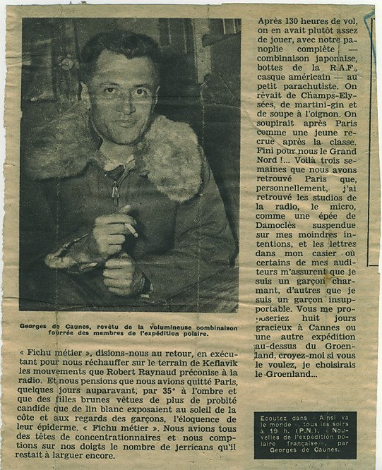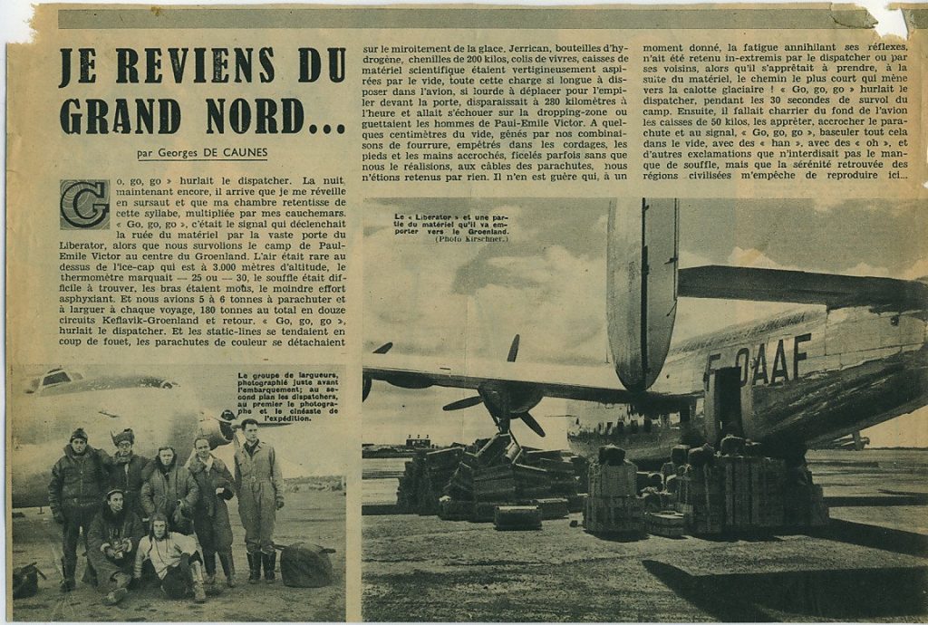 J’ai découvert il y a quelques temps des photos d’époque de ces merveilleux fous volants et de leurs drôles de machines, en fouillant dans une brocante de ma belle Charente Maritime. Puis avec Georges De Caunes j’ai entendu de nouvelles anecdotes et me suis rappelé les histoires que m’ont rapporté des « Géants » (2) comme Robert Guillard, Gaston Rouillon ou Camille Marinier. Tout ceci m’incite, à mon tour, à vous rapporter cette phase de l’expédition et à rendre hommage à ces hommes qui refusaient d’étouffer dans une sorte d’enlisement bureaucratique et avaient une certaine nostalgie de la belle époque. Outre les confessions de certains participants, c’est avec le compte rendu de Léandre Fallou et du rapport préliminaire des EPF « Ravitaillement Aérien des Expéditions Françaises au Groenland 1949-1950-1951 » que je vous propose cette partie de l’expédition au Groenland.