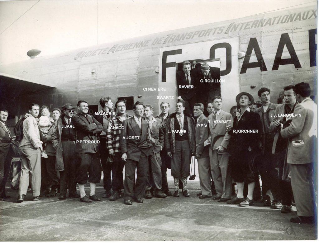 Donc à la tête Roger Loubry, ancien sous-marinier, ex-capitaine d’armement de la marine marchande, chef pilote du réseau atlantique Nord. Jean Combard, chef mécanicien des réseaux longs courriers. A leurs côtés, Antoine Veillard et Jean Pierre Villacéque, commandants de bord sur l’Atlantique Nord ; Jean Gay, instructeur sur l’Atlantique Nord ; Jean Jacques Stephano chef de file radio-naviguant sur l’Atlantique Nord ; Léandre Fallou, chef radio-naviguant des réseaux longs courriers ; Émile Talbot, instructeur mécanicien naviguant sur l’Atlantique et André Montet, mécanicien naviguant, pionnier de l’Atlantique Sud aux côtés de Mermoz, moyenne d’age 37 ans. Le financement de départ est assuré par Roger Nathan.