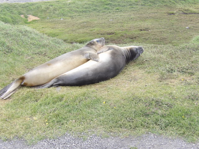 Vendredi 15 décembre, une visite est organisée par notre guide Thibault de la direction de l’environnement, qui nous emmène à l’anse du Pacha. Je constate que, par rapport à l’année 2000, les pissenlits sont présents. Il y a moins de manchots papous, je n’ai pas vu de cormorans, mais on a vu quelques chats faisant les gueules de terriers avec des lapereaux venant d’être tués. Les jeunes éléphants de mer sont en nombre, les goélands sont en train de couver. L’après-midi, nous sommes invités à un lâcher de ballon météo. Le soir après le dîner, je fais la présentation de l’amicale à Totoche. Beaucoup connaissent la RAP, mais peu l’amicale. Avec l’accord du gérant postal, j’ai déposé des feuilles d’adhésion au bureau de poste.