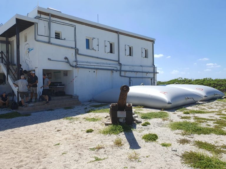 Durant trois mois, trois cyclones sont passés au large. L’île, ne culminant qu’à 6 mètres, est partiellement submersible. Les bâtiments de la base, construits en point haut, dont le principal comportant deux étages, sont le seul refuge de l’île.